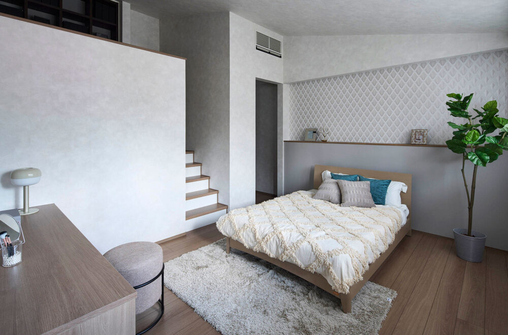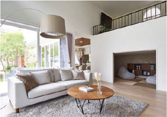 2階の居室と小屋裏スペースを一体化させるロフトスペースや、リビングに「あと少し」のゆとりを与える「ハーフ吹抜」など、家族がくつろぐスペースの開放感を高めるアイデアも。タテ空間を自在にデザインすることで、居住性と快適性を両立させます。